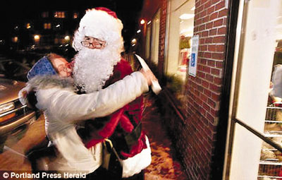 中新网12月25日电 据香港《文汇报》报道,美国缅因州波特兰一名神秘圣诞老人,23日走到大多穷人光顾的二手商店外,大派100封装有100美元现金的信封,民众大感意外,一名捉襟见肘的妇人感动得拥抱圣诞老人。派钱救济穷人的是当地一名匿名商人,他派儿子扮作圣诞老人派钱,自己站在远处旁观。