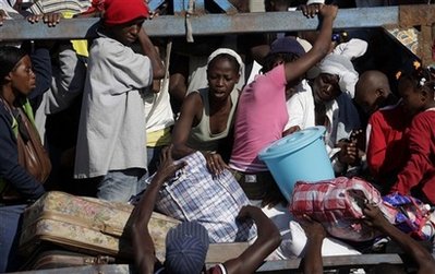 中新网1月19日电 据外电19日报道,数以千记的海地灾民争相挤上开往太子港郊区的公共汽车,希望在那里能够更容易的找到食物和水。