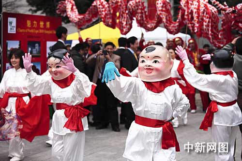 春节祭开场,各式中国传统民俗表演让日本当地人感受到了中国浓浓的年味。舞龙、旱船、大头娃娃、太极拳,场面分外热闹。