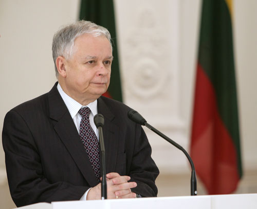 资料图为4月8日,波兰总统卡钦斯基在立陶宛访问。