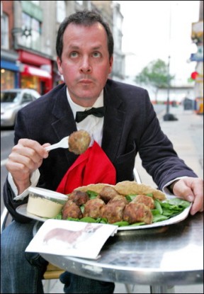 中新网伦敦5月30日电 一名英国艺术家29日在伦敦街头大嚼狗肉,抗议英王室围猎狐狸的行动。这一举动立即引发了英国社会各界争议。据悉,艺术家麦克格文(Mark McGowan)所食用的狗肉是伊丽莎白二世喜爱的名犬威尔士矮脚犬烹制的。
