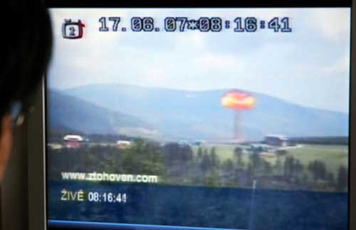 中新网6月19日电 当地时间6月17日上午8时16分,许多正在吃早餐的捷克人都被捷克公共电视二台一个实况直播节目里播出的可怕画面惊呆了:一朵火红的“核爆蘑菇云”正在捷克北部东波西米亚一个山村间冉冉升起!