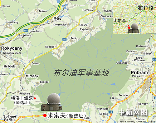 捷克政府发言人格尔瓦尼亚7月3日在一次国家安全会议之后向记者们宣布,米索夫村外两公里地图标高718.8的位置作为美国雷达基地新的选址从军事、安全和政治方面考虑都是最合适的。