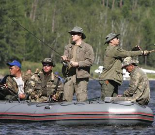 中新网8月14日电 据德国《图片报》报道,俄罗斯总统普京13日陪同摩纳哥国王阿尔贝前往西伯利亚的叶尼塞河钓鱼,人们在那里看到了普京总统前所未有的“酷”形象:他露出魁梧的上半身,头戴军用野营帽,戴着一幅太阳镜,手里拿着一根钓鱼杆。