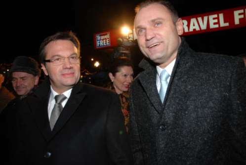 中新网捷克米古洛夫村12月20日电 12月20日晚10时离捷奥边境撤销检查前2小时,奥地利内务部长普拉特尔和奥地利驻捷克大使来到捷奥边境捷方边境小村米古洛夫和当地民众一起庆祝这个具有伟大历史意义的日子。