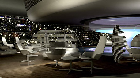 “人造彩云”的内部设计非常豪华,各种休闲娱乐设施应有尽有:一层设有餐厅、图书馆、健身房;二层设有20间客房,公共空间设有观景窗、温泉以及酒吧间。乘客们可以欣赏到6000米高空的风景。