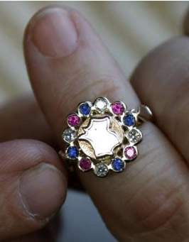 代表法国国旗红、蓝、白三种颜色的戒指