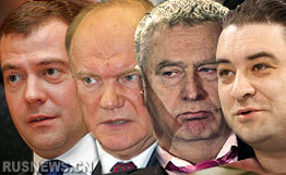 共有四位候选人竞争继叶利钦和普京之后的俄罗斯总统职位。他们是几度竞选过总统的俄罗斯共产党主席根纳季·久加诺夫、自民党主席符拉基米尔·日里诺夫斯基,还有初次竞选总统的俄罗斯民主党主席波格丹诺夫和第一副总理梅德韦杰夫。
