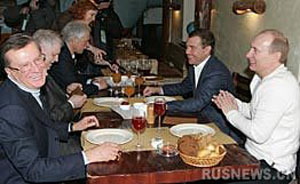 中新网3月2日电 据俄新网报道,俄罗斯联邦总统普京在投票后和联邦政府总理维克多·祖布科夫、联邦政府第一副总理德米特里·梅德韦杰夫、联邦委员会主席谢尔盖·米罗诺夫以及国家杜马主席鲍里斯·格雷兹洛夫等到饭店共进午餐。