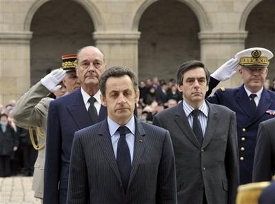 法国总统萨科齐和前总统希拉克出席葬礼。