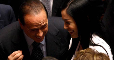 即使已经71岁高龄,并正值意大利众议院对他领导的新政府进行信任投票,但在14日的议会演讲中,贝卢斯科尼的注意力还是被两名魅力四射的新进者吸引。32岁的侬齐雅·德吉罗拉莫一头黑发,金发碧眼的加布里拉·吉曼科年仅31岁,上个月她们刚刚入选众议院。