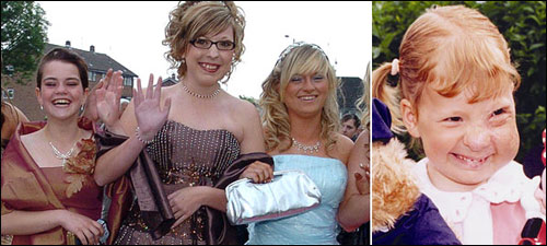 科迪与同学一起参加学校的毕业舞会(左);科迪小时候的样子。