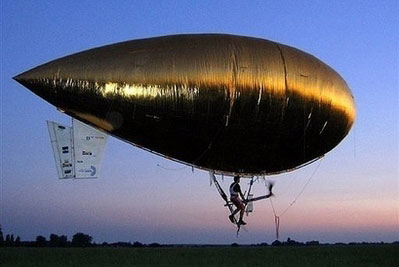 据悉,他的飞艇长16米,装有两个螺旋桨推进器,靠脚踏推动,是全球第一艘同类型的脚踏飞船。