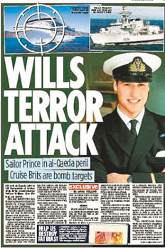 英国威廉王子目前正以海军中尉的军衔在英国海军加勒比海上的护卫舰“铁公爵号”上服役。令人震惊的是,“基地”旗下的一个恐怖组织正密谋派一艘装满数百公斤炸药的快艇,对“铁公爵号”巡游海域的超级豪华邮轮发动“911”式的自杀恐怖袭击,一旦得逞将造成邮轮上数千人死亡,也将令威廉王子陷入危险之中。庆幸的是,MI6和CIA及时发现了这一可怕的“海上911”袭击计划。