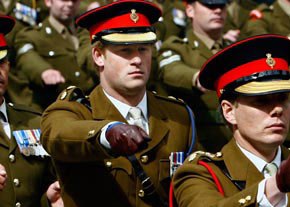 中新网6月19日电 综合报道,英国王室第三继承人哈里王子18日和他的战友一起参加纪念在阿富汗阵亡英士兵的纪念仪式,身着军装的王子和众士兵一起阅兵,尽显“王子兵”的飒爽英姿。