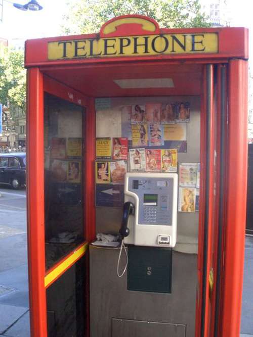 英国的公用电话亭内贴满了妓女广告(互联网)