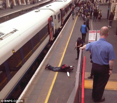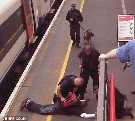 就在英国警方抓捕这名无辜男子时,一名在现场的乘客使用手机拍下了有关过程。有目击者对记者说,“当时有很多人都在排队买票,但突然有多名全付武装的警察冲进车站,他们的人数大约有10个人,有些警察拿着手枪,另外还有一条警犬。我听见有人说:不要让任何人走下火车或者离开站台。随后火车站所有的出口都被封锁了。火车的车门打开后,那名男子刚一走下站台,就被命令趴在地上,他被要求伸开双手并靠拢双腿。警方对这名男子的背包进行了认真的搜查,然后又把他带到一间废弃不用的盥洗间,可能是对他进行一步的搜查。这一幕真是让人感到非常恐怖。”