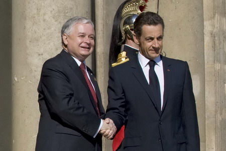 波兰总统卡钦斯基(左)与法国总统萨科奇(右)