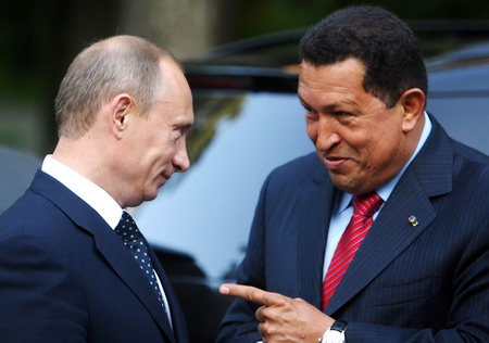 俄罗斯总理普京(左)与委内瑞拉总统查韦斯(右)
