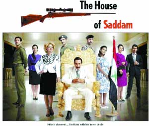 一位很像富人的男人坐在黄金椅座上,周围是他衣着雍容的家人——这一幕在美国电视剧中并不少见,但这次的主角可不是常人,他是萨达姆。
