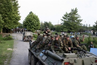 俄罗斯士兵乘装甲车进入阿布哈兹。