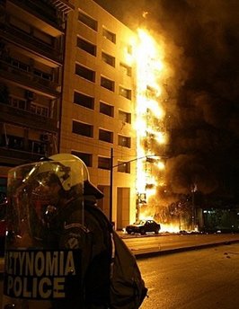 12月9日,希腊骚乱升级,雅典恍如“战场”。
