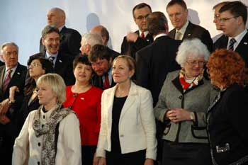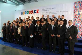 7日上午他们在伏尔塔瓦河畔的列支敦士登宫会见了轮值主席国捷克的政府内阁成员。官员们按照地上已标好的名字“对名入站”,让记者们拍摄合影。(黄频)