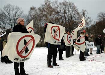 中新网布拉格1月8日电 一小组反对美国在捷克建立中欧导弹防御系统的雷达基地民间组织的成员7日在欧盟委员会和捷克政府官员会面的布拉格列支敦士登宫外冒着零下6度的严寒举行示威,抗议政府同意建立美军基地。