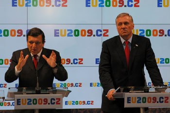 中新网布拉格1月8日电 欧盟7日对由于俄罗斯和乌克兰之间的争端,输往欧洲的天然气被中断一事使用了迄今为止最为严厉的言辞,欧盟委员会主席巴罗佐和欧盟轮值主席国捷克总理托波拉内克在布拉格捷克政府大厦面对大约100多名记者声严厉色批评断气事件。