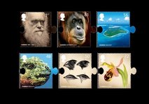 据台湾《中国时报》报道,这组精彩邮票中的6张邮票以类似拼图版的锯齿设计,象征达尔文如何将不同主题融合,进而表现在进化论中,正如同他的旷世巨作《物种起源》。