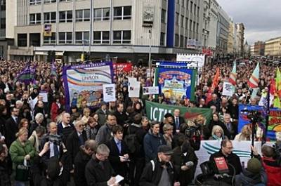 据英国媒体报道,集会活动由“联合”工会组织发起,除贝尔法斯特外,伦敦德里、纽里、唐帕特里克、利斯本等地也同时举行。