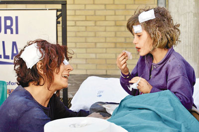 灾区一片愁云惨雾下,亦偶有振奋人心的消息。意大利安莎通讯社报道,救援人员昨晨在拉奎拉的瓦砾中救出一名98岁老妇,她的健康状况良好。她在等候救援30小时,自言一直在“做针线活儿”。消防员又在瓦砾中救出2岁小女孩,她的母亲为了救她,用身体挡住瓦砾,伤重不治。