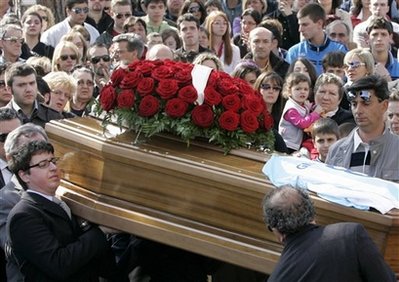 意大利中部城市拉奎拉的居民8日为地震中遇难的人举行了首批葬礼。由于震区目前余震不断,所以从废墟中挖掘更多幸存者的希望越来越小。星期五将在拉奎拉为地震死难者举行一个集体葬礼,这一天意大利全国将为死难者哀悼。