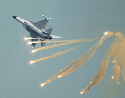 Jf-17“雷电”战机中国称之为FC-1“枭龙”,是一种中巴联合研制的单座战机,它是一种多功能战斗轰炸机,属四代机,可携带多种空空、空地武器,目前,该机配备的发动机是俄制RD-93型,该机航程3000公里,单机价格1500万美元。(张加军)