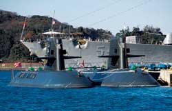 11月30日,记者乘车前往位于横须贺的日本海上自卫队自卫舰队司令部。一进入曲径通幽的港口营区,记者即被告知,不经过允许,严禁将摄像机和照相机镜头对准自卫舰队的码头和舰艇,以及与之毗邻的美国海军基地。日本自卫舰队的舰艇和美国海军基地的军舰相邻泊靠,舰体大都涂成深灰色,依靠舰旗分出彼此。抬眼远望,美国海军几艘大型舰艇引人注目,可以看到“54”“69”等舷号。有人说,“小鹰”号航母就在其中,而那艘舷号为“54”的舰艇,曾到我国青岛访问。