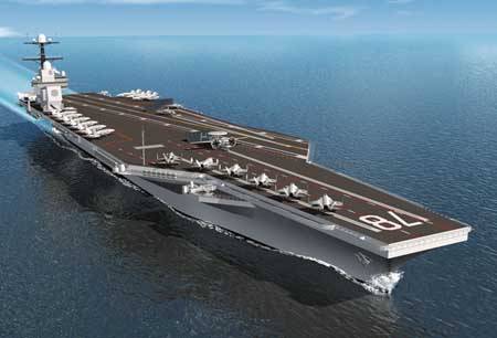 纽波特纽斯船厂是目前世界上唯一能够建造大型航母的船厂。“福特”级航母排水量预计约100000吨,长约1100英尺。新一代航母的设计包括新的飞行甲板,并改进了武器搬运系统,采用先进阻拦装置、最新开发的电磁飞机弹射系统、新设计并简化的核动力装置,以及新的发电装置。