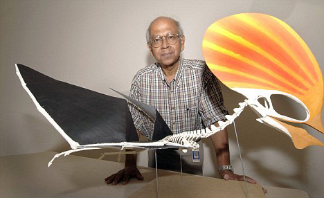 古生物学家萨克·查特吉与复原的翼龙骨骼