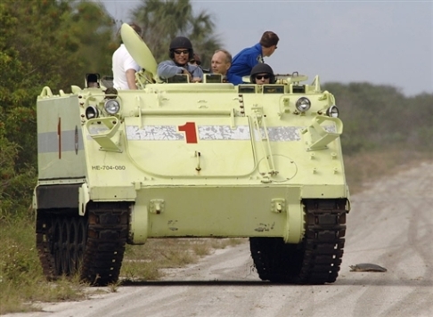 国际空间站的法国宇航员当上了装甲车的驾驶员。他突然发现路面有情况,马上把装甲车驶离马路!发生了什么紧急情况呢?原来路面上有一只乌龟。(见图)训练结束后,宇航员都表示非常有趣,还会继续参加类似的训练活动。据悉,这次训练活动将为期3天。