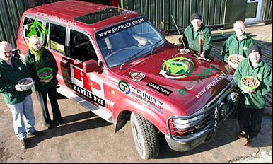 参加这次活动的冒险家,工程师安迪·佩格和电工约翰·格雷姆肖希望借此行提高人们对可以减少碳排放量的可再生性生物能源的认识。