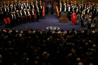 中新网12月12日电 综合报道,2007年诺贝尔奖颁奖典礼近日分别在挪威首都奥斯陆和瑞典首都斯德哥尔摩隆重举行。不同领域的多位获奖者呼吁突破学科和国家界限,应对全球变暖等人类共同面对的挑战。瑞典国王,王后等王室成员还与诺贝尔奖获得者共享大餐。
