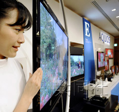 夏普公司推出的AQUOS X系列46英寸彩电,最厚处仅3.44厘米。(共同社图)