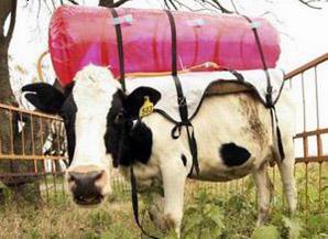 中新网7月10日电 据科学家指出,牛羊等反刍动物通过打嗝和放屁的方式排放大量的甲烷,造成了巨大的污染。据英国《每日邮报》9日报道,阿根廷科学家在牛背上绑上一个塑料罐,专门收集牛打嗝和放屁排出的废气,供研究之用。