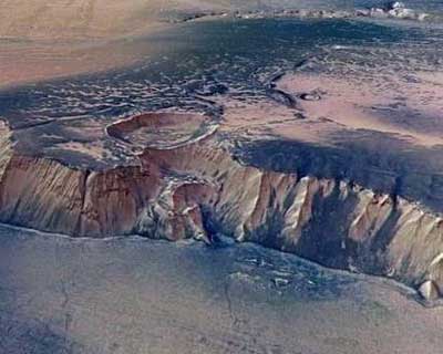 欧洲航天局公布的火星照片,显示火星上其中一个最大水源区。