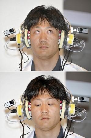 据“中央社”报道,日本研究人员真锅宏幸在展示这款装置时,他戴上这种大型耳机,展现出感应器如何侦测到他的眼球移动时产生的电流。