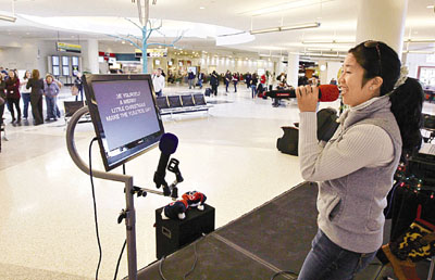中新网12月22日电 据香港《文汇报》报道,乘客等上机时打发时间的方法很多,美国休斯敦国际机场就想出新点子,设置免费卡拉OK器材,让乘客大展歌喉。