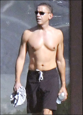 据英国《太阳报》报道,即将成为美国首位黑人总统的奥巴马近日携妻子米歇尔、两个女儿前往夏威夷度假,他脱掉了T-shirt,向外界展示了他完美的胸部和腹部肌肉。