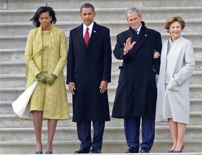 奥巴马妻子米歇尔,被许多人当成是美国新的时尚标竿,当天在夫婿的就职大典上,她穿了古巴裔美国设计师伊莎贝尔托雷多设计的一袭金黄色洋装,外搭同材质的合身长外套,配上一条宽面的钻石项链。