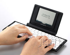 日本一家文具公司所推出的折叠式电子记事本(pomera),订价27000多日元,约折合2050元。功能上就定位为简单的记事文具,它的尺寸与口袋书相当,重量只有370公克。特点是折叠式的键盘跟屏幕,键盘打开来时不小于B5尺寸,具有随时收放、轻松记录的特性。此外电源则采用可长时间使用的电池。