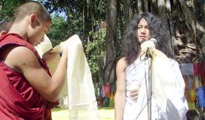 这个男孩名叫班坚,现年17岁。尼泊尔一名叫Prakash Sen的警官称,11日他在加德满都东南150公里的Ratanpuri丛林,向附近村庄的信众发表讲话。