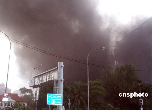 记者28日设法进入昨晚吉隆坡美国驻大马使馆门口大火现场,目前仍然浓烟滚滚,从中可见当时状况。中新社发 苏祥新 摄